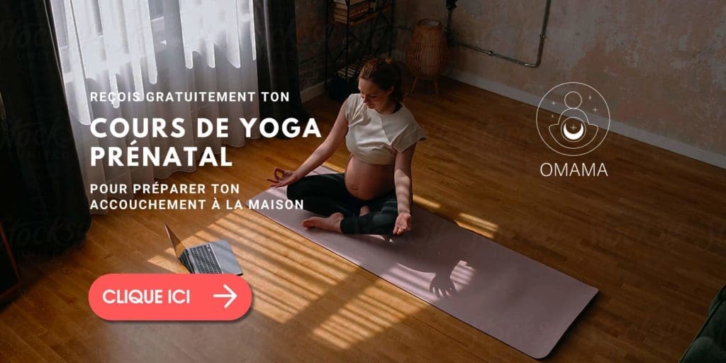 Si vous avez envie de recevoir un cours de yoga prénatal gratuit pour préparer votre accouchement, cliquez sur l’image ci-dessous et inscrivez votre adresse mail dans le formulaire qui apparaît. Vous recevrez immédiatement un cours en vidéo avec Sarah Mc Mullin pour vous donner un avant-goût du programme Omama et de tous ses bienfaits.