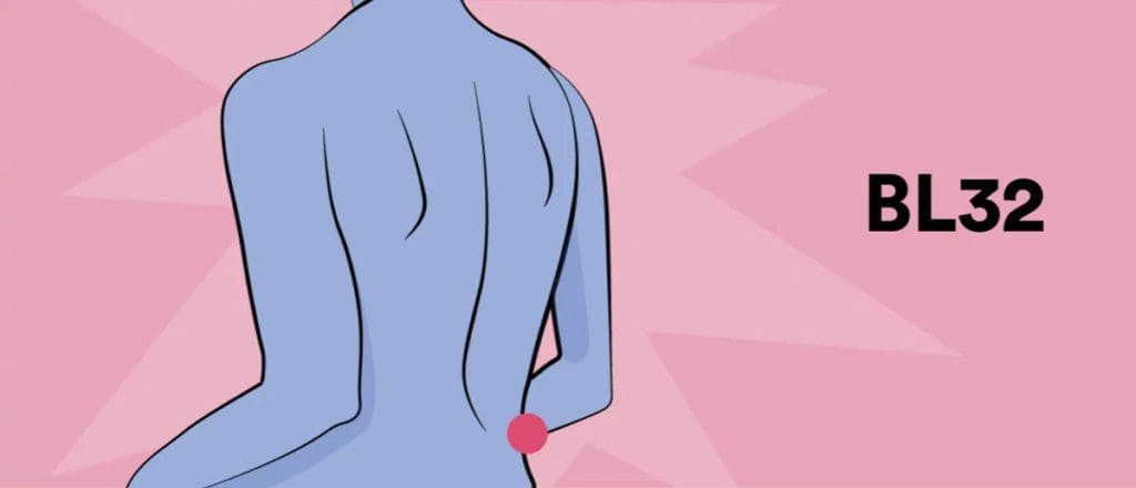 Où le trouver : Le point BL32 se trouve dans les fossettes en bas de votre dos, juste au-dessus de vos fesses. Pour y arriver, placez vos doigts le long de votre colonne vertébrale jusqu’à ce que vous sentiez une empreinte.