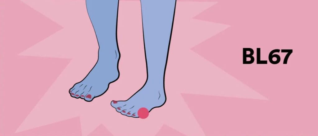 Parfois appelée le point d’atteinte, le point de la vessie 67 (BL67) est censée déclencher des contractions et encourager les bébés en siège ou en position postérieure à se retourner, ce qui leur permet potentiellement de sortir plus facilement.