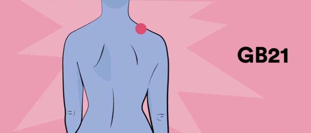 Où le trouver : Le point GB21 est situé au milieu de votre muscle de l’épaule, juste au-dessus de votre clavicule.