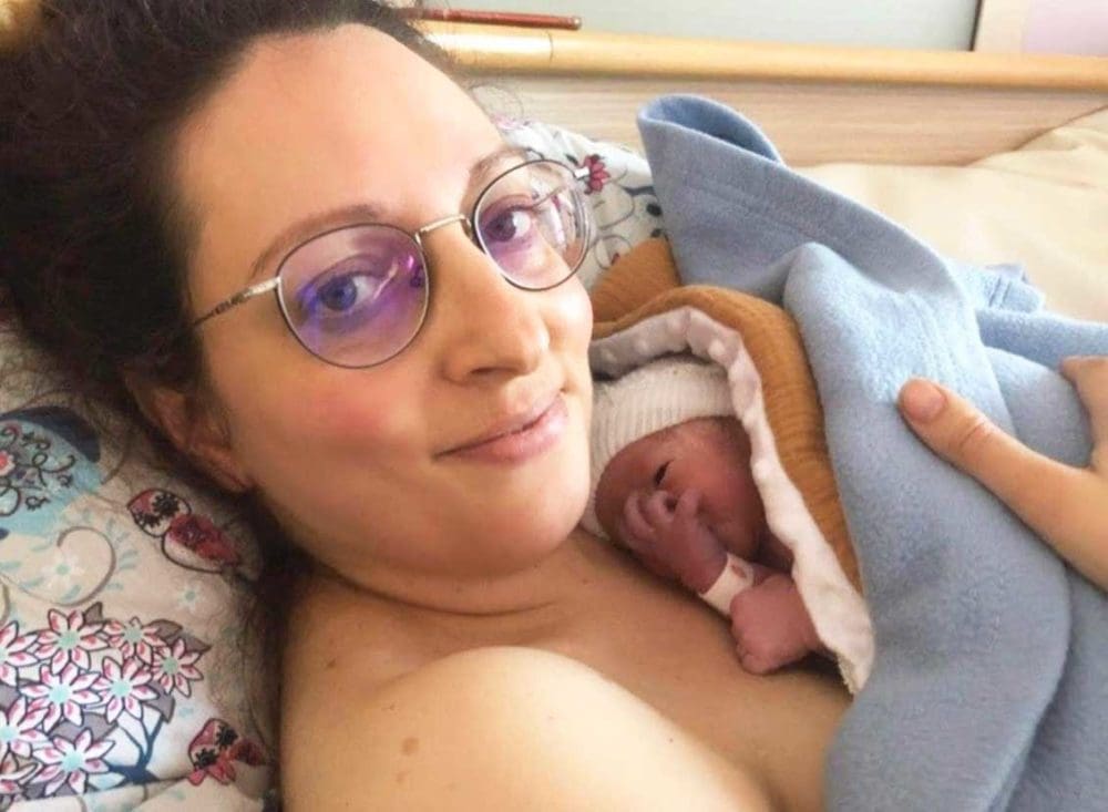 C’est un bébé coiffé, né dans sa poche des eaux. Tout a été si rapide !