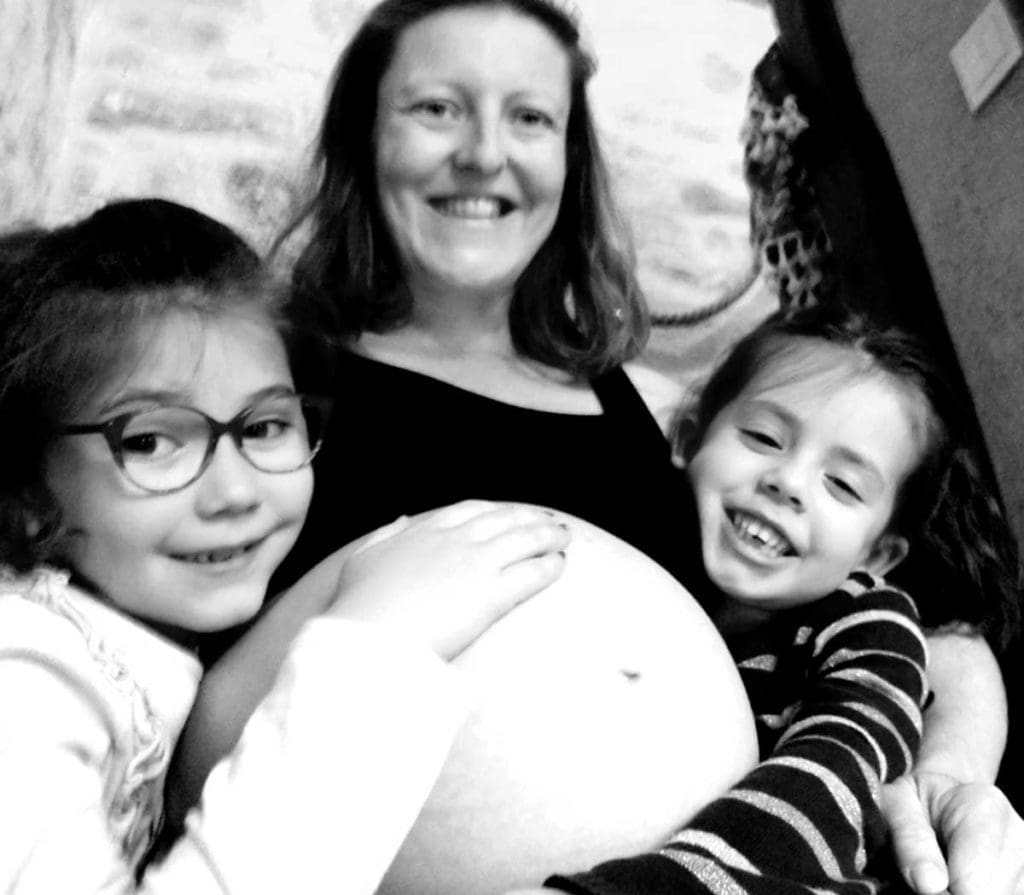 Aurore enceinte de sa troisième fille entourée de ses deux aînées.