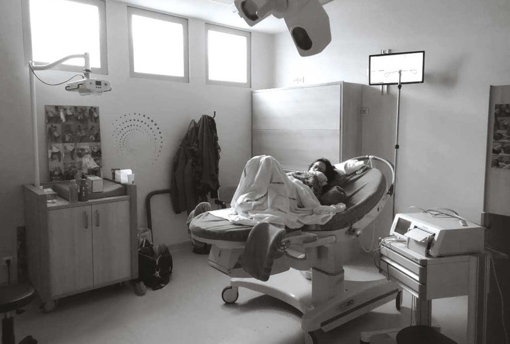 Rapidement on nous installe moi et mon mari dans la salle nature, il n’y a pour l’instant pas de chambre individuelle en service maternité pour nous faire attendre et en fin de compte tant mieux.