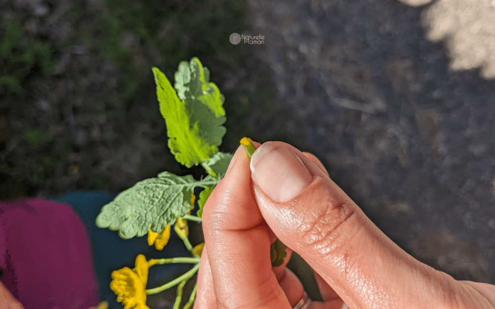 Son suc jaune-orangé, extrait directement de la plante fraîche, est reconnu pour son action sur les excroissances cutanées.